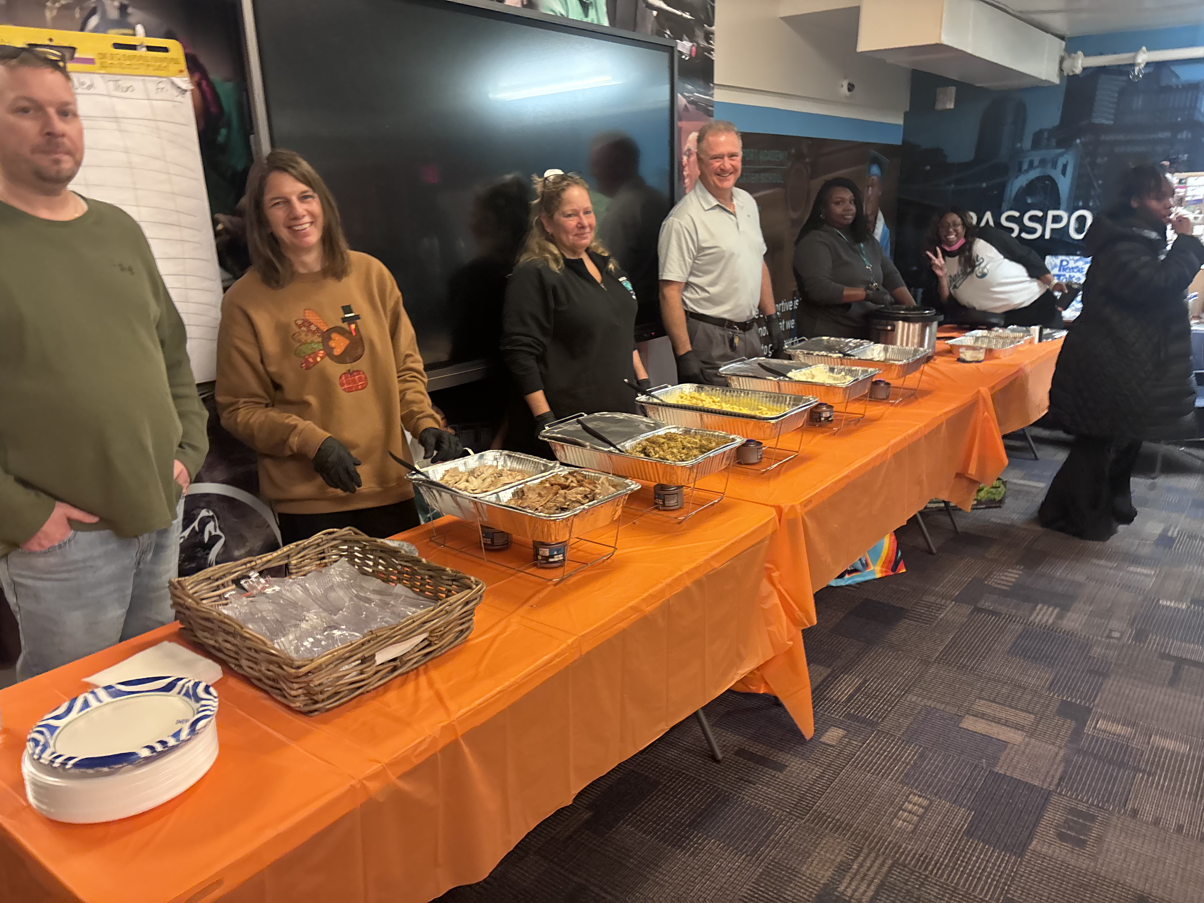 The Passport Academy Charter School Student Ambassador Program brings students together to help create a positive school culture. The program meets every other Tuesday to brainstorm activities for the school and develop peer support frameworks for grade improvement, work completion and overall academic encouragement. This week, students involved in the program organized a school-wide Friendsgiving for staff and students to celebrate the Thanksgiving holiday together before the school break. Thank you to those who made donations to help support this event, including Giant Eagle Bethel Park, The Brothers of Pittsburgh Alumni Chapter of Kappa Alpha Psi, and Cobbler World for the delicious desserts.
